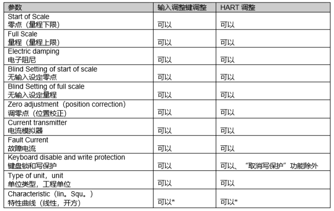 西門子壓力變送器參數的調整可以在現場通過儀表自身配備的三個輸入調整鍵實現,也可以通過 HART 協議外部實現。以下表中列出的為上述可實現的基本參數。其它用于特別用途的參數可以通過 HART 協議調整。